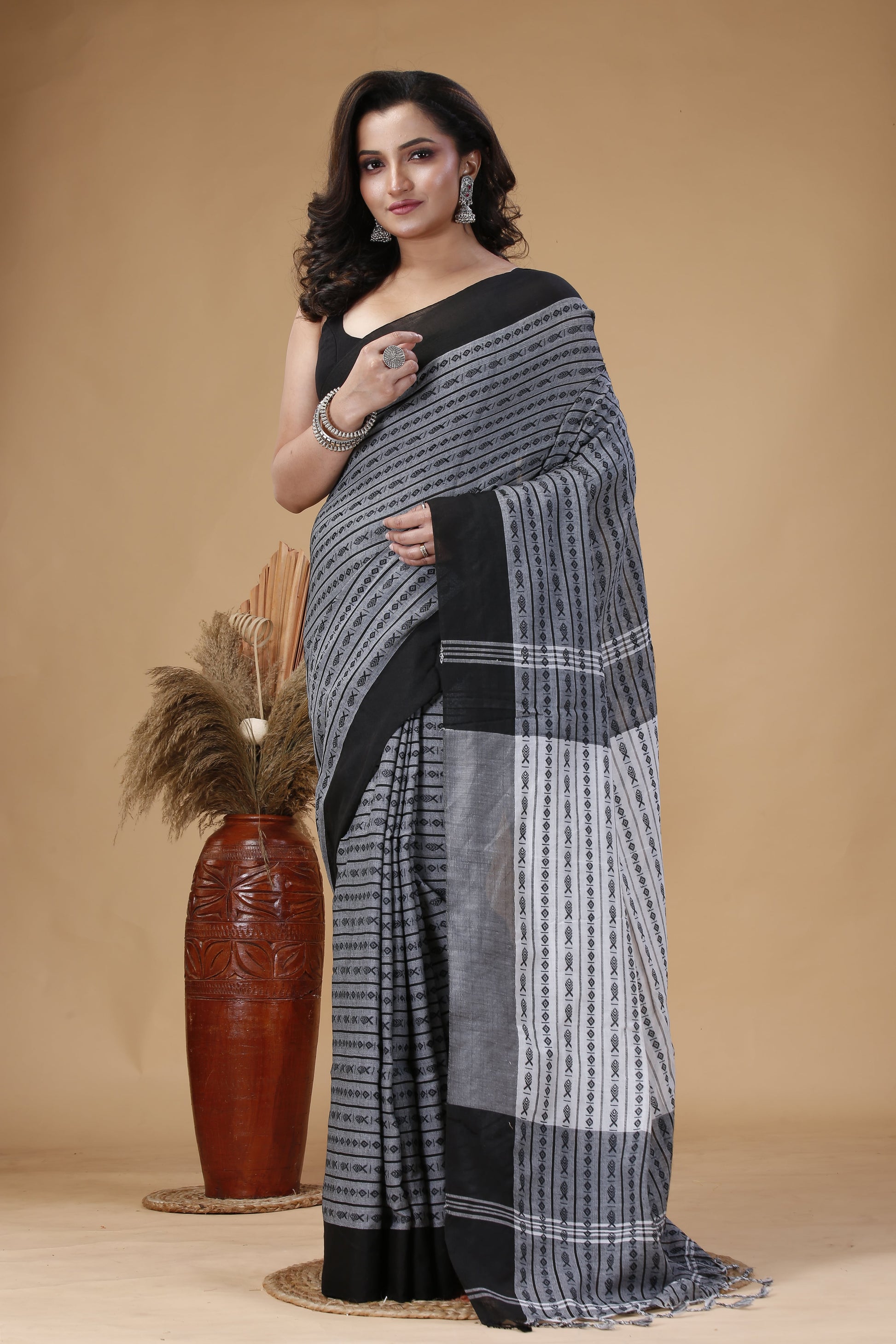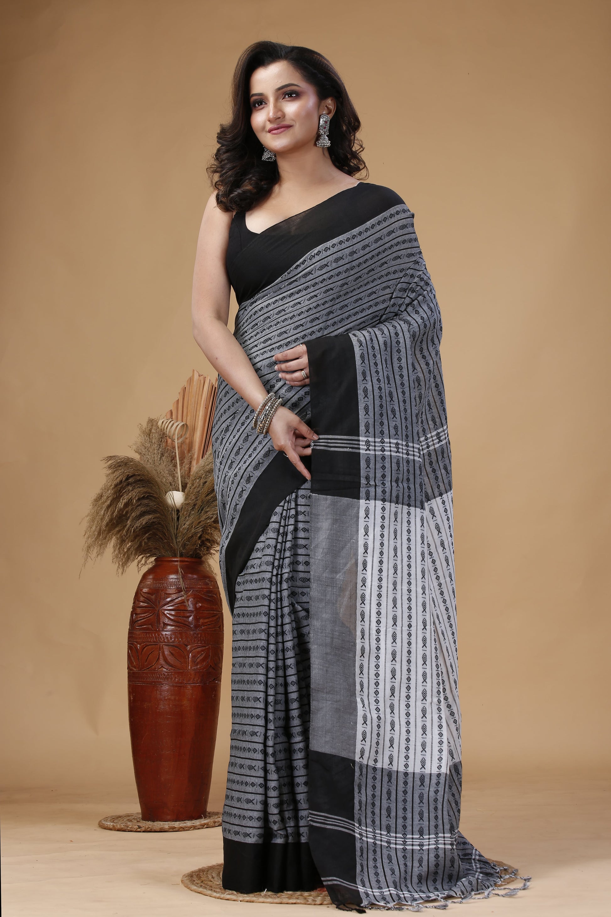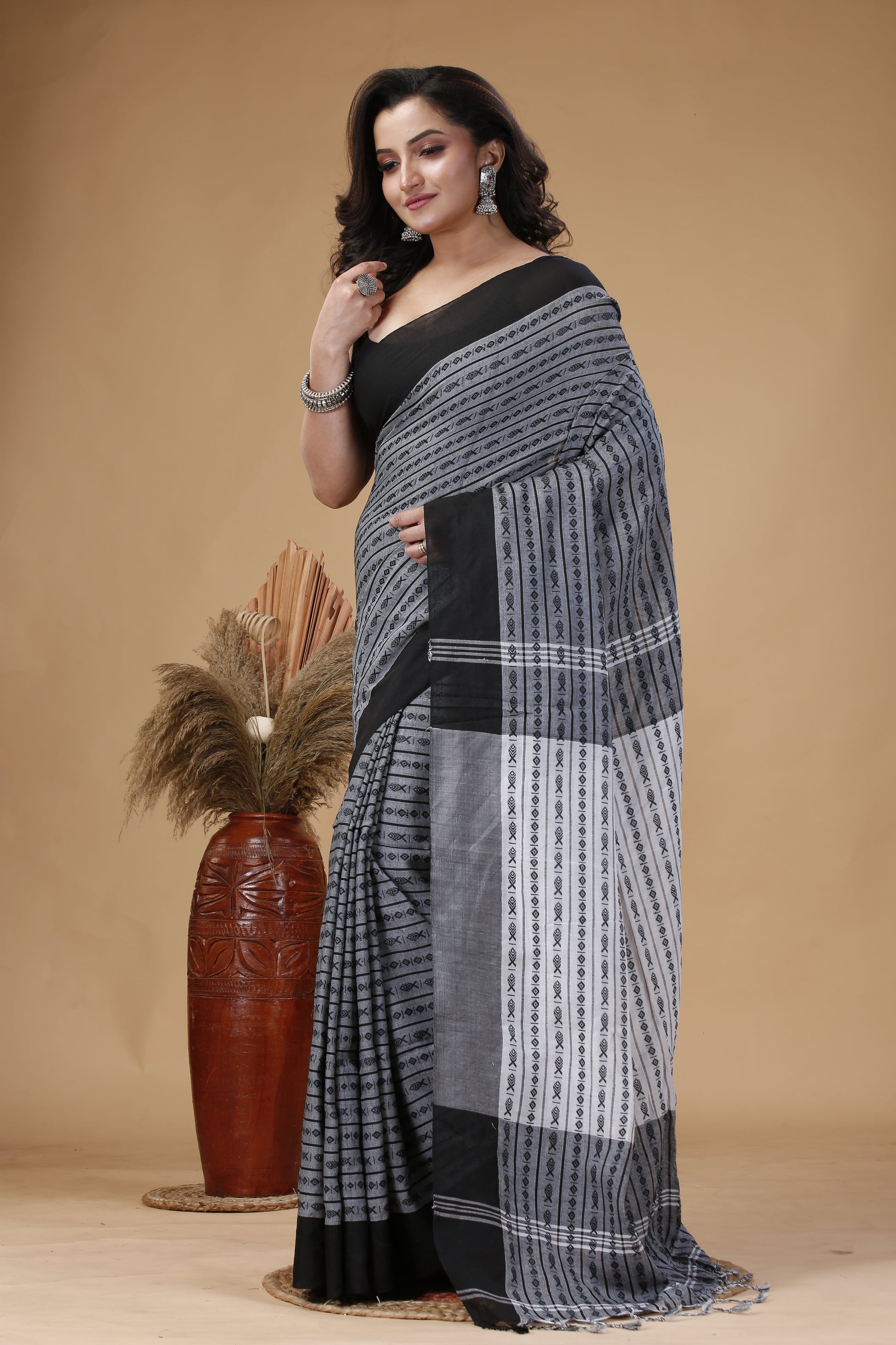 Khaadi Cotton Saree with Fish Motifs – Handloom Saree from Bengal